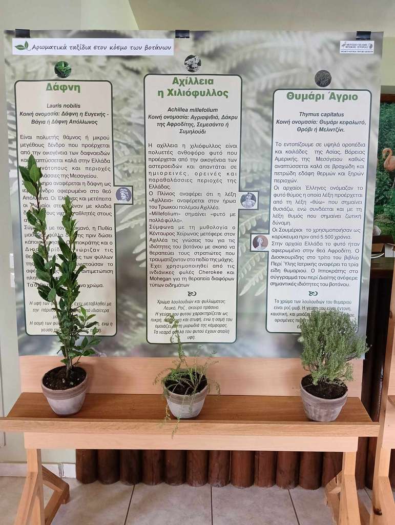 In particular, in connection with the exhibition of Greek native herbs "Aromatic journeys through time: exploring the world of herbs" which was offered as an educational tool for informing adults and minors (primary school students from 14 schools in Zakynthos), more than 550 people had the opportunity to participate, to talk with the working group and the Founder of the Natural History Museum P. Helmis, to learn about the therapeutic and beneficial effects of herbs on human health, through a magical journey of storytelling, folklore, crafts and interaction.
